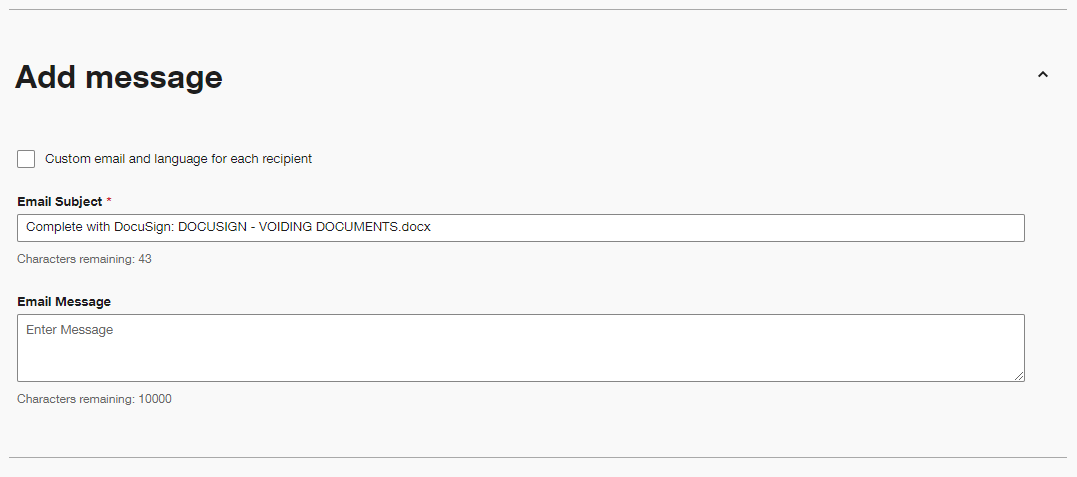 Use the below message template in “Email message” when sending a REVISED DOCUMENT after VOIDING a prior document: